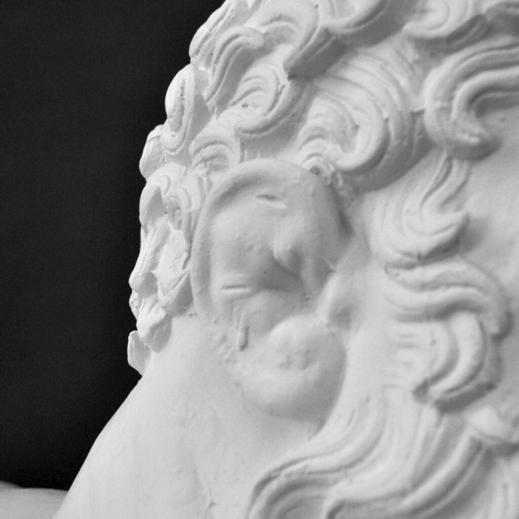 Die Form wurde von einem Abguss aus dem 19. Jh. abgenommen. Alte Stückformnähte sind noch erkennbar.